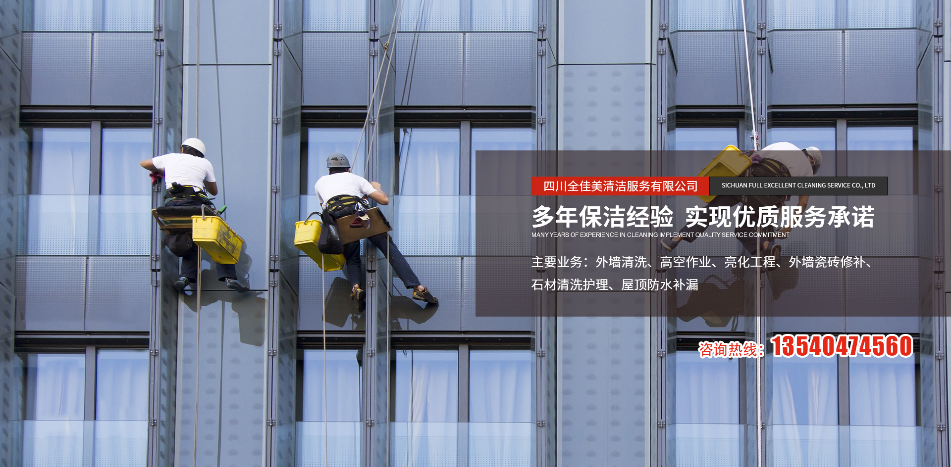 四川全佳美清潔服務(wù)有限公司成立于2017年11月20日,注冊(cè)資本200萬元人民幣,是一家專業(yè)從事高空外墻清洗,外墻維修,開荒保潔,石材養(yǎng)護(hù),外墻防水等一體化的工程服務(wù)公司。公司先后服務(wù)于成都鐵路培訓(xùn)學(xué)校,雙流空港酒店,省體育館等寫字樓及工業(yè)園區(qū)的外墻清洗保潔及維修服務(wù)。經(jīng)過多年的發(fā)展與努力,公司已具備一定的規(guī)模及實(shí)力?,F(xiàn)擁有一支技術(shù)精湛的服務(wù)團(tuán)隊(duì),以高標(biāo)準(zhǔn)的服務(wù)品質(zhì),專業(yè)的安全技術(shù)實(shí)力,為全川不同群體的客戶提供更安全,更周到的清洗服務(wù)解決方案,期待與你的合作。